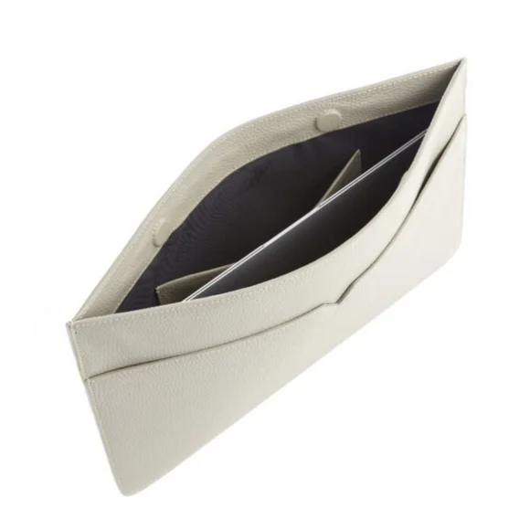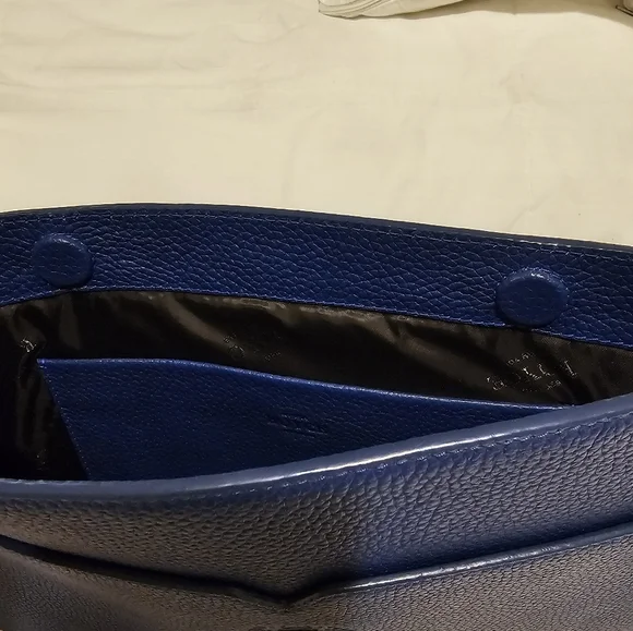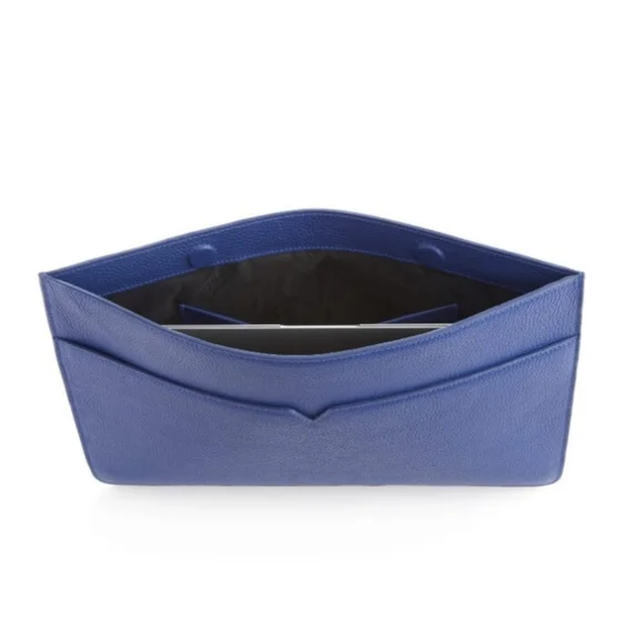 Blue Pebbled Leather Underarm Portfolio /13″ Laptop Sleeve by RoyceHandcrafted in stunning pebble grain American leather, this slim laptop sleeve is equally lightweight and durable, a stylish addition to business travel or daily commute. Thoughtfully designed to fit most slim 12"-13" screen laptops, the laptop carrying sleeve can be used for important papers as well.Elegant laptop carry or slip a few important papers or contract or something you don't want to get folded in this elegant leather portfolio cover by Royce.Brand new never used.Exterior front slip pocket and interior small slip pocket. This closes securely and simply with four circular metal magnets inside (2 shown in photo).15" wide10" tallLovely gift