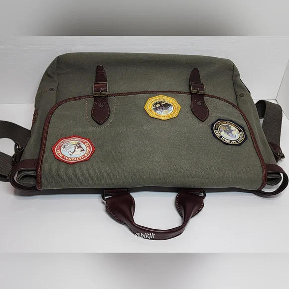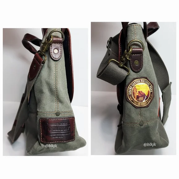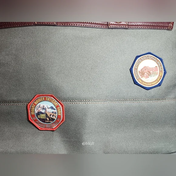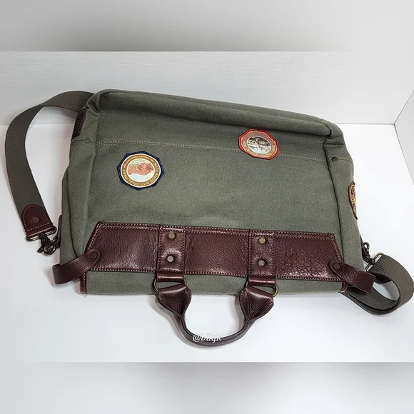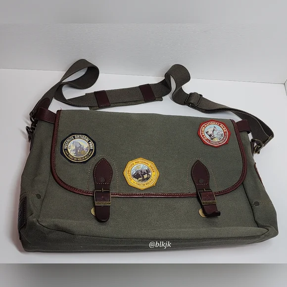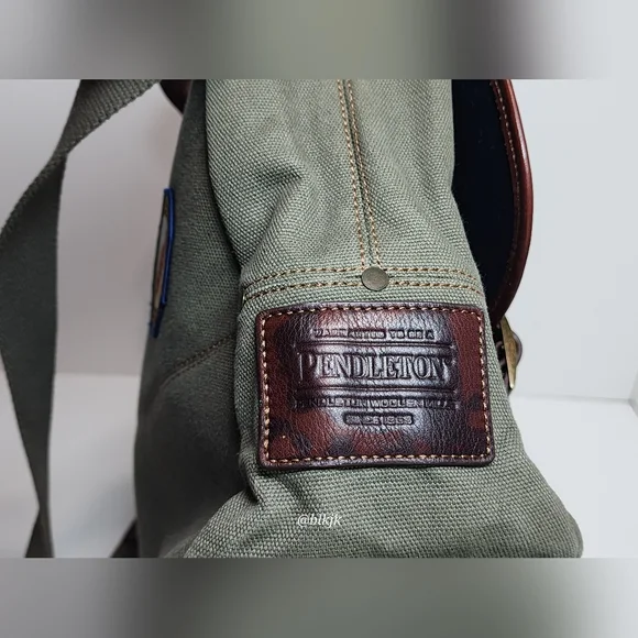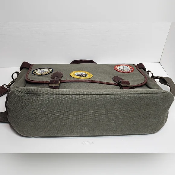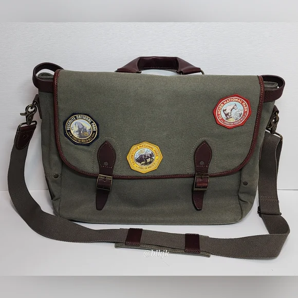 Rare Pendleton National Parks Patches Canvas/Leather Messenger Laptop Bag Excellent Used Condition Pendleton National Parks messenger bag Multiple patches from national parks, including Yellowstone, Yosemite, Glacier, Mount Rainer, Badlands, and Grand CanyonDurable canvas with brown leather accentsTop leather handleRemovable adjustable crossbody/shoulder strapDouble magnetic leather snap flap closures Zip pocket under flapSnap flap closure insidePadded laptop pocket insideBlue fabric liningBrass hardware16" W12" H5 1/2" D3 1/2" Handle drop1" Handle width12-23" Strap drop1 1/2" Strap widthNo tears, stains, or odorsSmoke Free